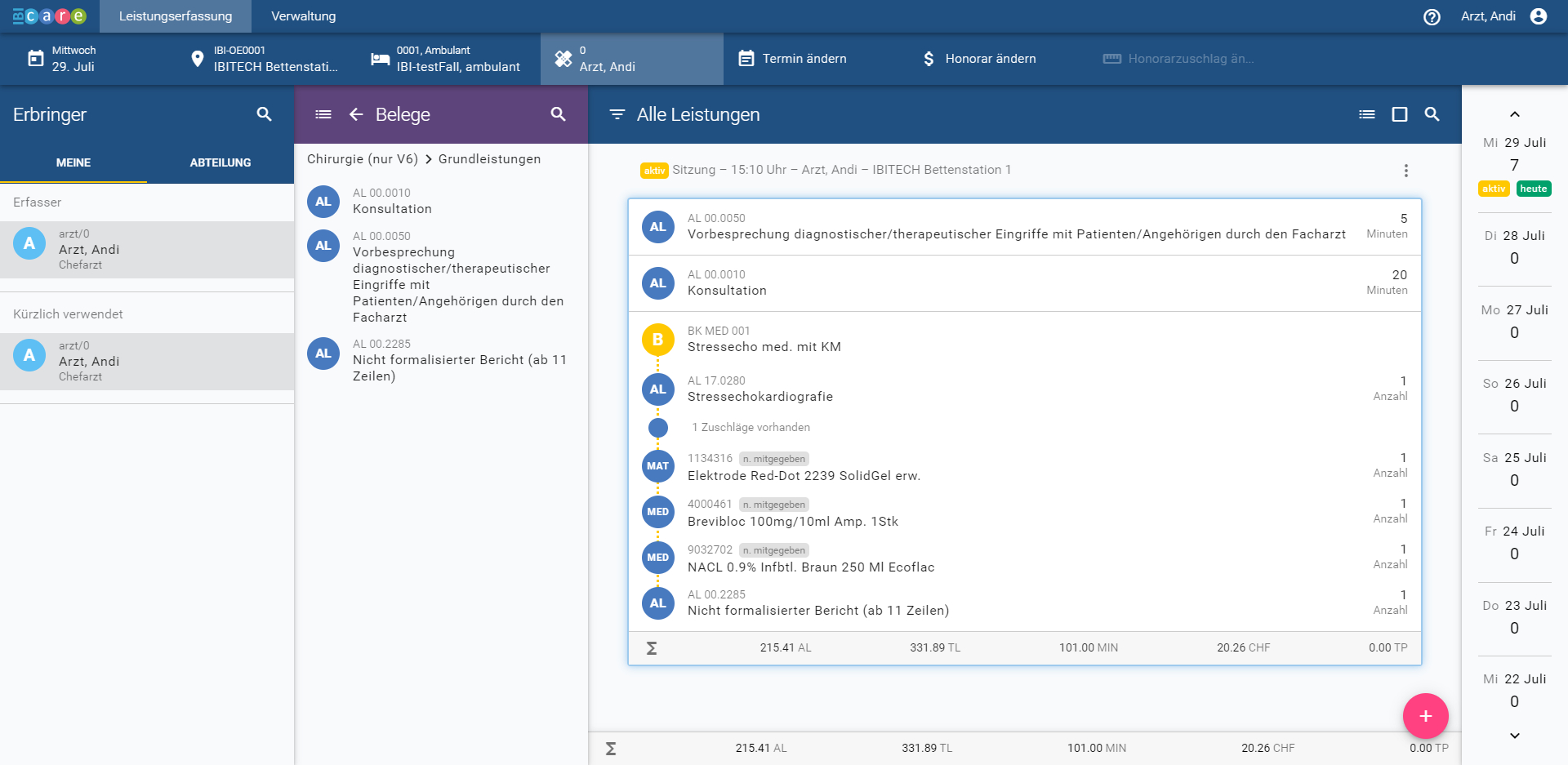 IBI-care Erfassungsmaske