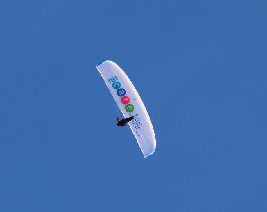 „Hoch hinaus“ ging es mit dem neuen IBI-care Gleitschirm, der vor atemberaubender Kulisse, weit über Grindelwald, mit unserem IBI-care Logo und dem zugehörigen Motto seine Kreise zog.